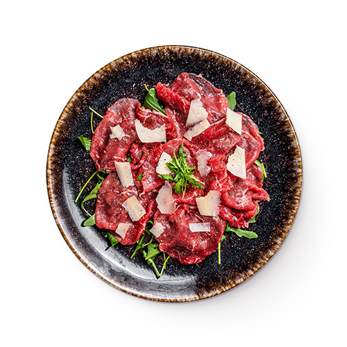 Закуска из тонко нарезанных слайсов сырого мяса или рыбы с соусом на основе оливкового масла и лимона
